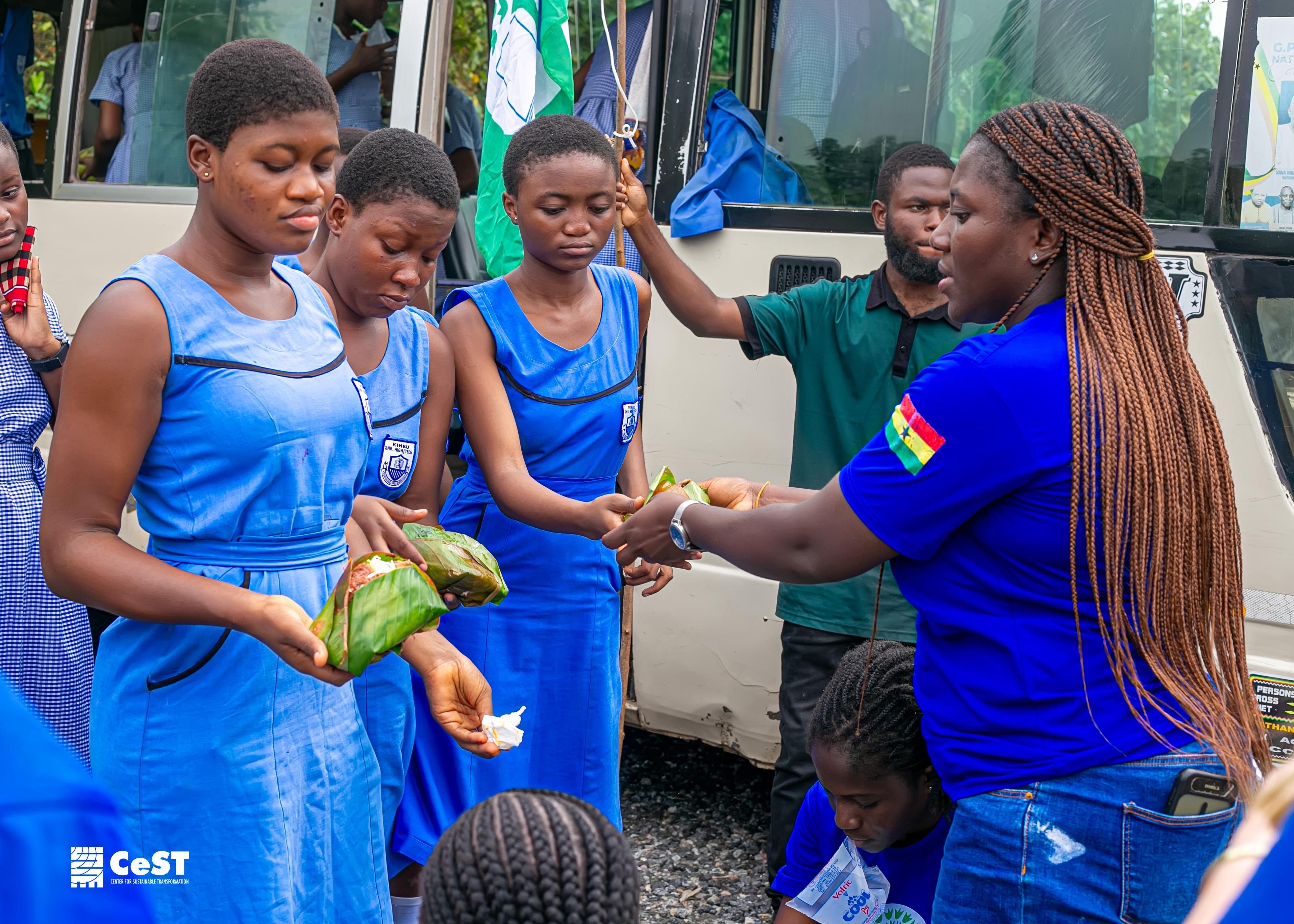 To complete the learning cycle, CeST prepared lunch for everyone using a traditional, plastic-free method. Food was served in banana leaves, demonstrating alternatives to single-use plastics that already exist within Ghanaian culture.